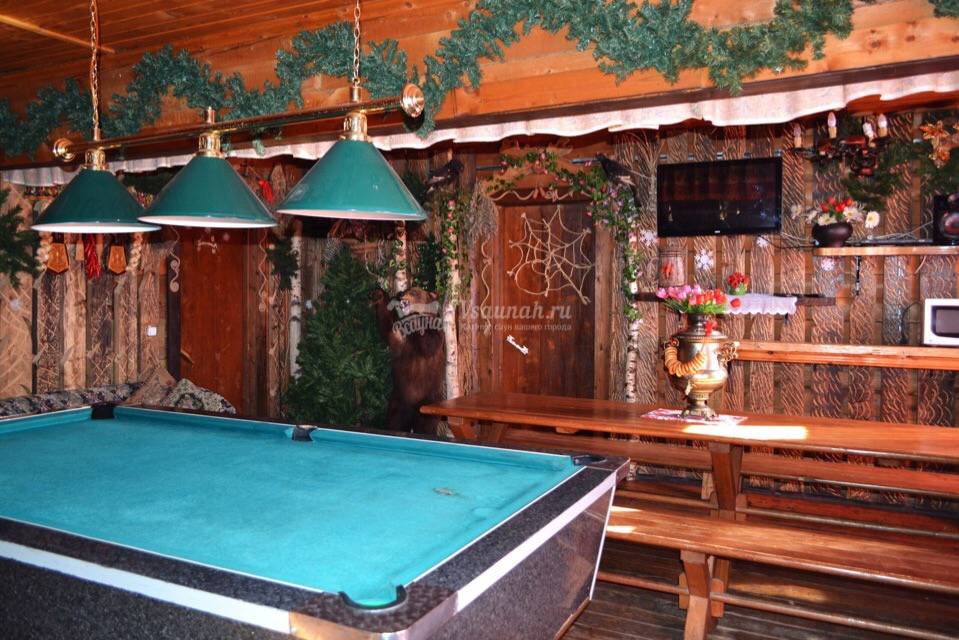 Две русские бани на 10 и 30 человек, дворик с мангалом и беседкой. Баба яга по древним ритуалам приготовит сказочную бочку наполнив ее отваром лечебных трав, молоком, пивом или даже шампанским! После водных процедур усадьба приглашает гостей в уютные комнаты отдыха посидеть у настоящего самовара, поиграть в бильярд или настольный теннис.