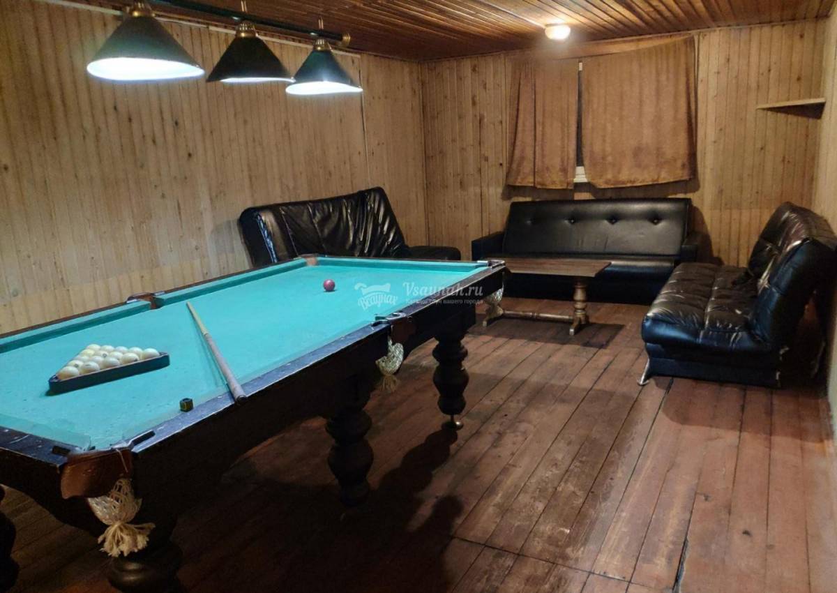 Чтобы отдохнуть с максимальным комфортом, вы можете выбрать пахучие веники для создания полноценной банной атмосферы. В перерывах между заходами в парную к вашим услугам зал с камином, бильярдные столы, комната отдыха. Здесь также есть бассейн.
